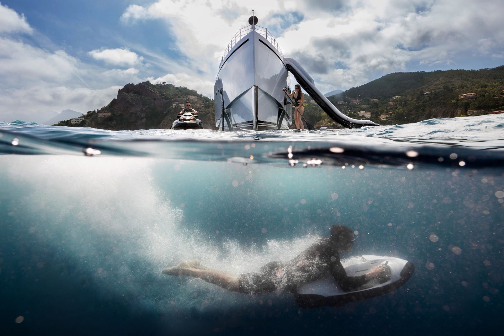 SOUNDWAVE, is a full-custom motor yacht delivered by Benetti in 2015, and recently refit in 2025. With her bold vertical bow and sleek Art Deco-inspired interiors by Candy & Candy, she stands out as one of the most distinctive yachts on the water.