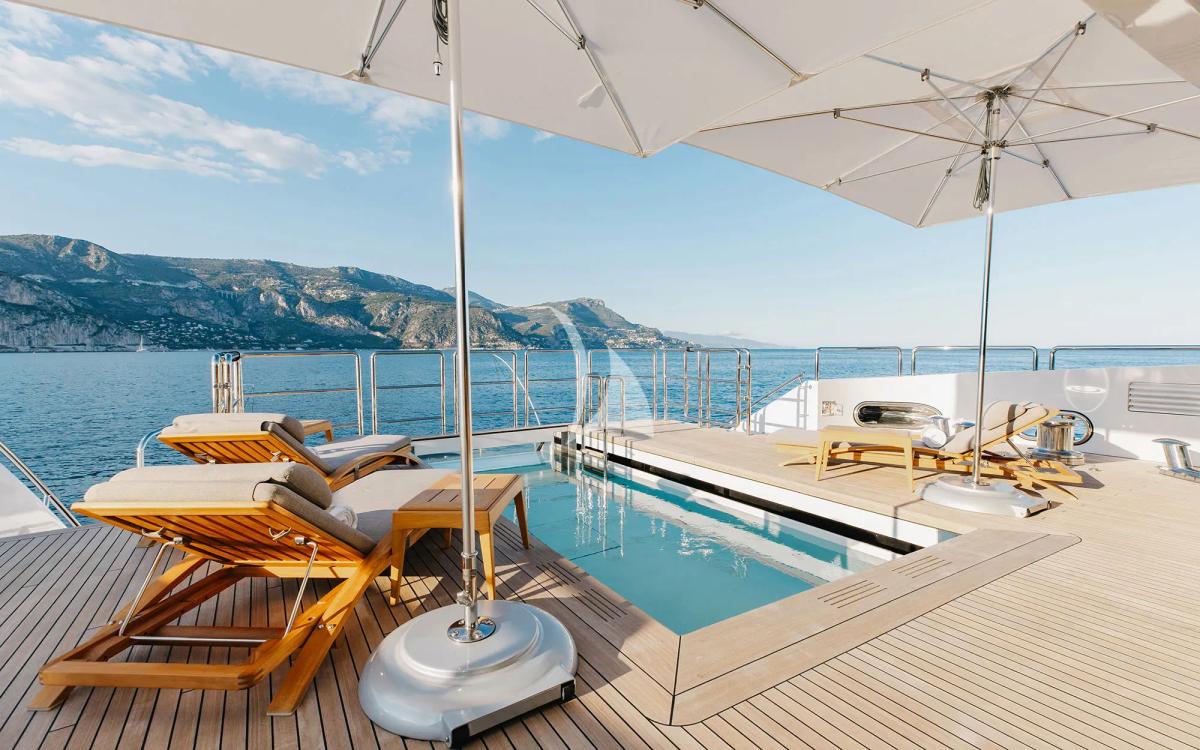 - Aft main deck swimming pool 4.2m x 2.2m, filled with heated fresh water.