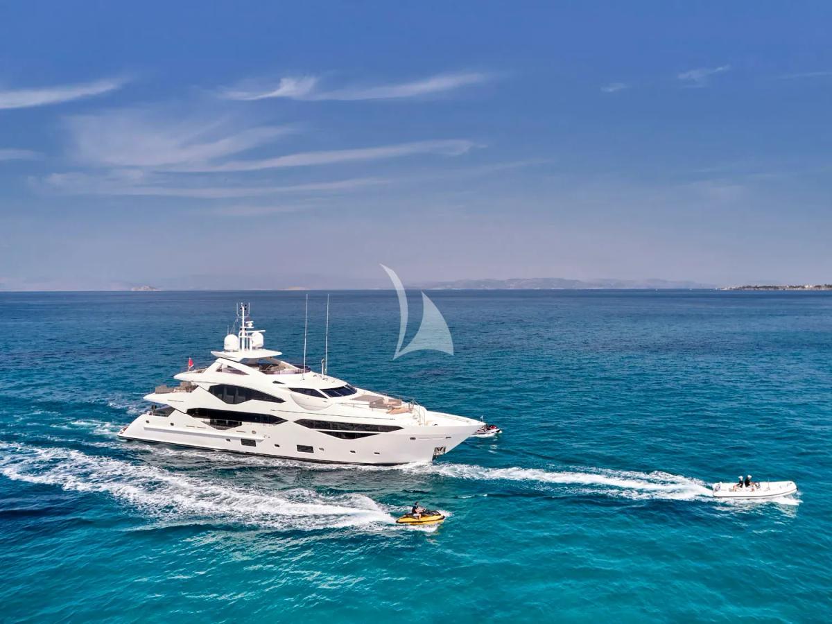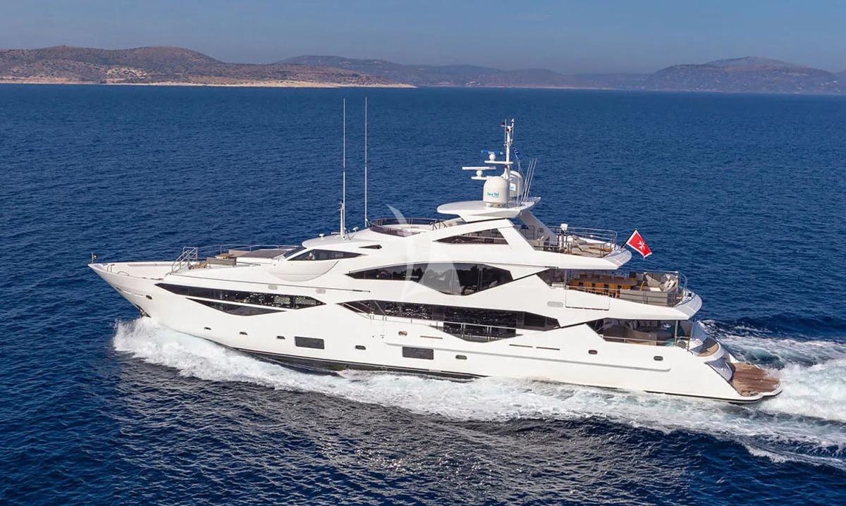 A 131’ Sunseeker, M/Y Aqua Libra was launched in 2018. A sophisticated luxury yacht featuring wide views and elegant decoration; relax your senses with her entertainment and savor top-notch Mediterranean cuisine by the talented chef onboard. Aqua Libra offers a high level of personal comfort and luxury. Her special feature of large windows invited plenty of natural light creating an illuminous ambience. The sundeck provides a Jacuzzi, a wet bar and plenty of space to relax and soak in the sun. The upper deck offers an indoor salon, bar, and a large dining table on the exterior aft deck. She sleeps 11 guests in five luxurious staterooms including a panoramic master suite on the main deck featuring huge windows allowing plenty of light to penetrate giving a bright, spacious feel as well as two private dressing rooms and a his & her bathroom. Aqua Libra is in exceptional condition and fully equipped with numerous water toys!