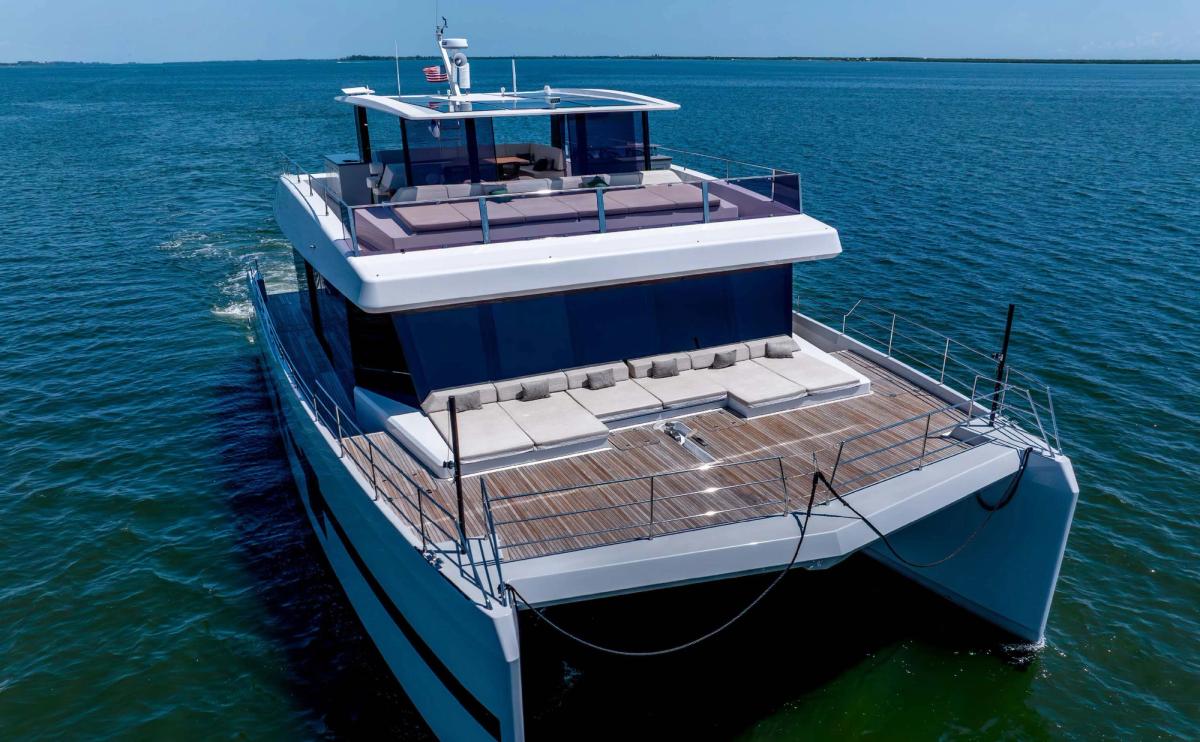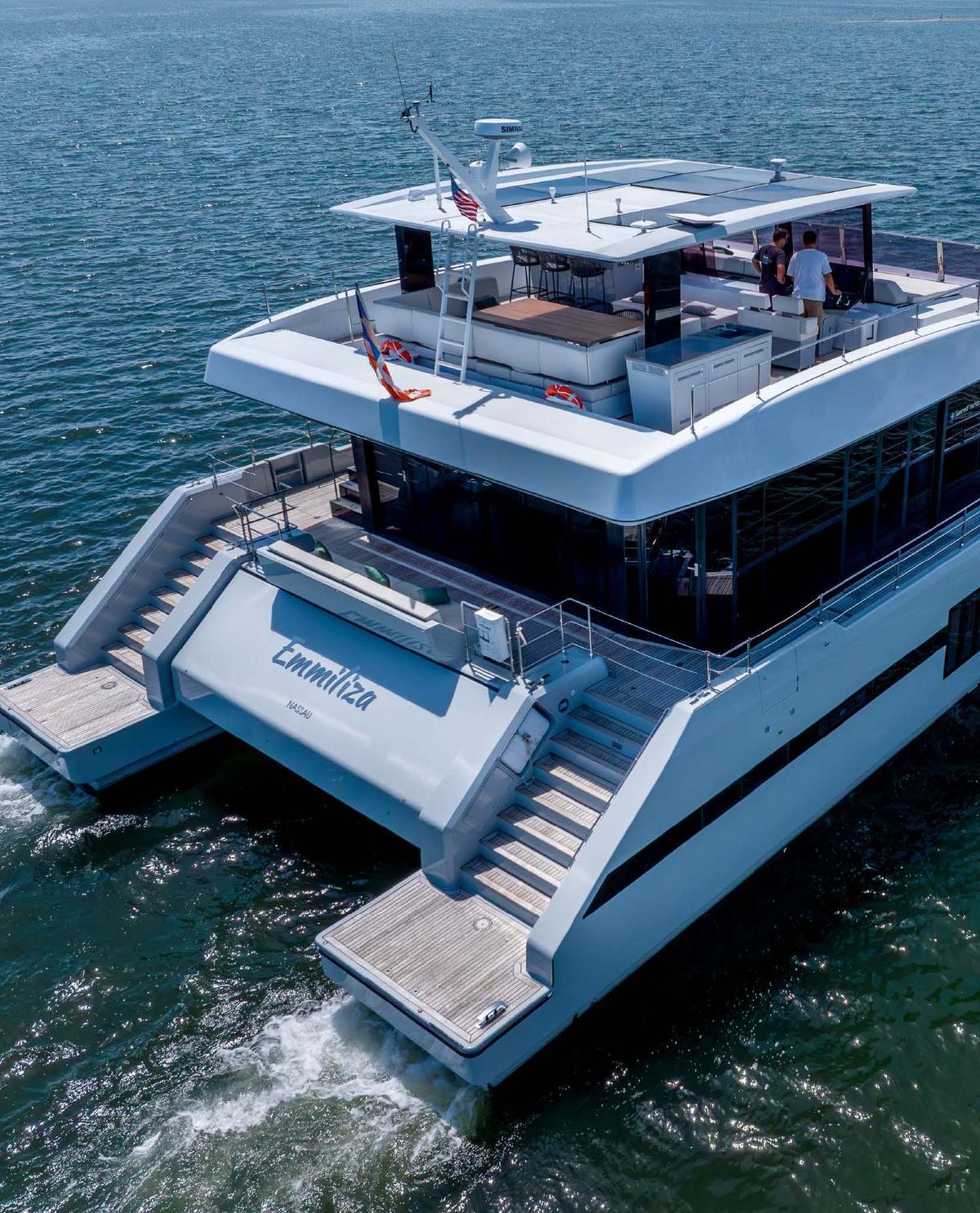 The 68-foot Sunreef Power Catamaran EMMILIZA, featuring a 5-cabin layout, exemplifies elegance and performance. It is expertly crafted for long-range cruising, offering unparalleled space, stability, and luxury. Constructed by the esteemed Polish yacht builder Sunreef Yachts, this model prioritises spacious living areas, innovative engineering, and complete customisation options.