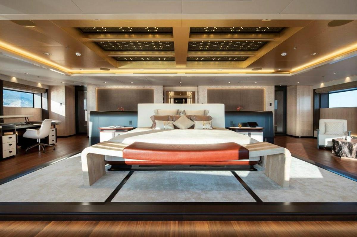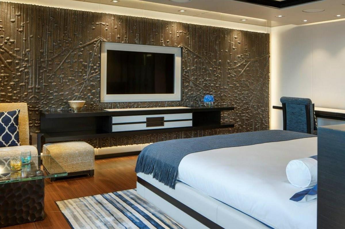 ILLUSIONS PLUS combines performance and comfort while offering the long-range cruising capabilities of 5000 nautical miles at 15 knots. The 88.5-meter, six-deck yacht has benefited from private use since her 2018 launch. An innovative vertical bow and an abundance of interior volume measuring in at 3,642 gross tons coupled with her unique propulsion system make her a truly unique gigayacht. Pride worked closely with Rolls-Royce to create a diesel-electric system with Azipull thruster pods, she is ultra-efficient and quiet, without compromising her speed. The interior design is by the renowned Sinot Yacht Design. The main deck salon mezzanine feature allows the interior to be opened up creating a double-height atrium, comfortable seating and a cinema screen while an elevator connects four of the six decks. She features accommodations for 12 guests in 6 massive staterooms including a noteworthy 860-square-foot owners suite, located on its own deck. In addition to the suite, the yacht has two VIPs, two double guest cabins, one twin, and two staterooms for the owner’s staff on the deck below. Quarters for the 25 crew members are in 15 cabins on lower decks.