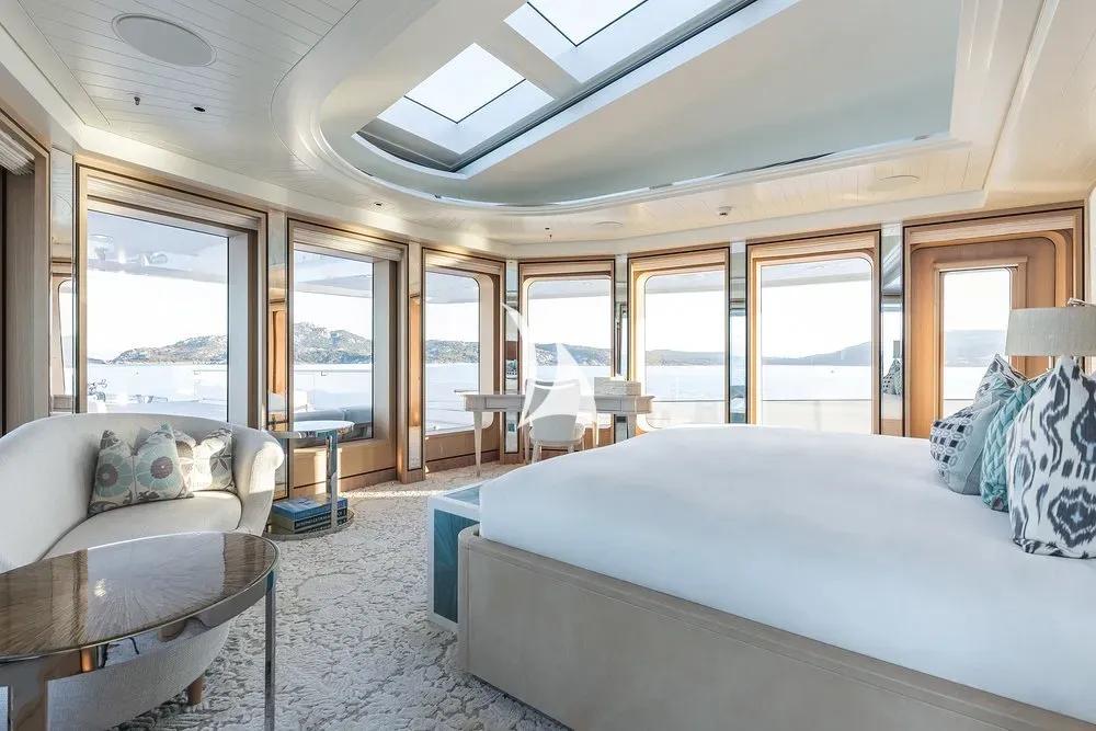 Inside, Studio Indigo was responsible for her vibrant interior that includes an extremely flexible cabin layout sure to sleep 12 guests comfortably. With seven cabins, an elevator servicing three of the five decks plus an array of facilities dedicated to wellness (including a large gym, spa room and on board masseuse), JOY has quickly established herself as a firm favourite on the charter scene.