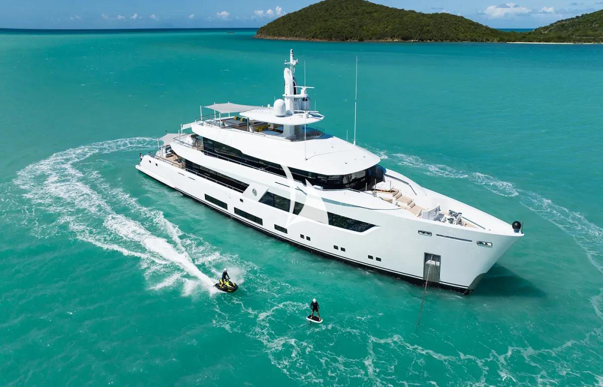 She comes with numerous amenities, including a gym and a large swim platform – perfect for trying out some of the water toys – while her biggest standout feature is her aft deck pool, which can be raised and lowered as required, a great feature for young kids. The pool also features a counter