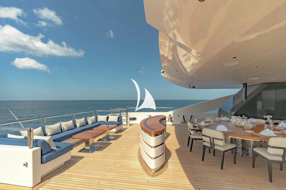The upper deck is dedicated to the owner and includes a full beam master suite leading onto a private terrace aft. A separate office and dressing room, lounge area and library with a sheltered seating area forward, provide a welcome retreat while on board. Invite guests to enjoy sundowners on the aft area while the talented chef prepares an exquisite dinner to be enjoyed either al fresco on the main deck aft or in the formal dining area. Wherever you choose to eat, drink and relax, rest assured that you will always be comfortable in STARLUST’s exclusive and luxurious surroundings.