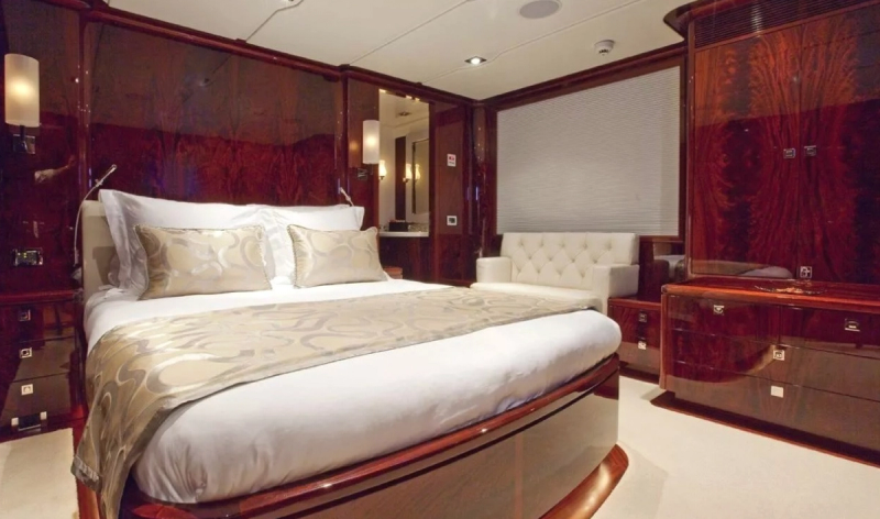 VALQUEST’s interior features a state-of-the-art design, with a high-gloss mahogany and white leather finish throughout. The interior feels unusually luminous and the split-level saloons blend together extremely well to form a light and spacious area for dining and relaxation. The 4 cabin layout is composed of a large master suite, 2 double cabins, and one twin cabin, all with ensuite facilities.